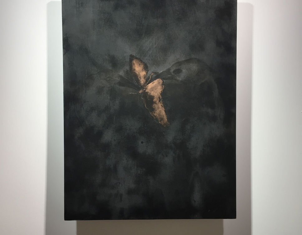 In this exhibition, Reckless Behaviour, Mann contemplates how we as humans regard survival and death; how we are driven to alter our behaviour in order to keep living and to deal with passing on. Focusing on the concept of ‘Thanatos’ – the innate death drive, an impulse to engage in risky and self- destructive behaviour – Mann’s artwork manifests itself in the form of two creatures: the apocalyptic pale horse and the moth driven towards the light which could ultimately lead to its demise.